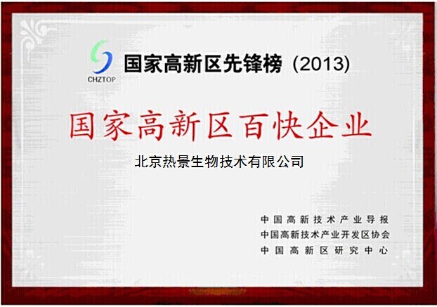 北京熱景生物榮列“國家高新區(qū)先鋒榜(2013)百快企業(yè)”榜單