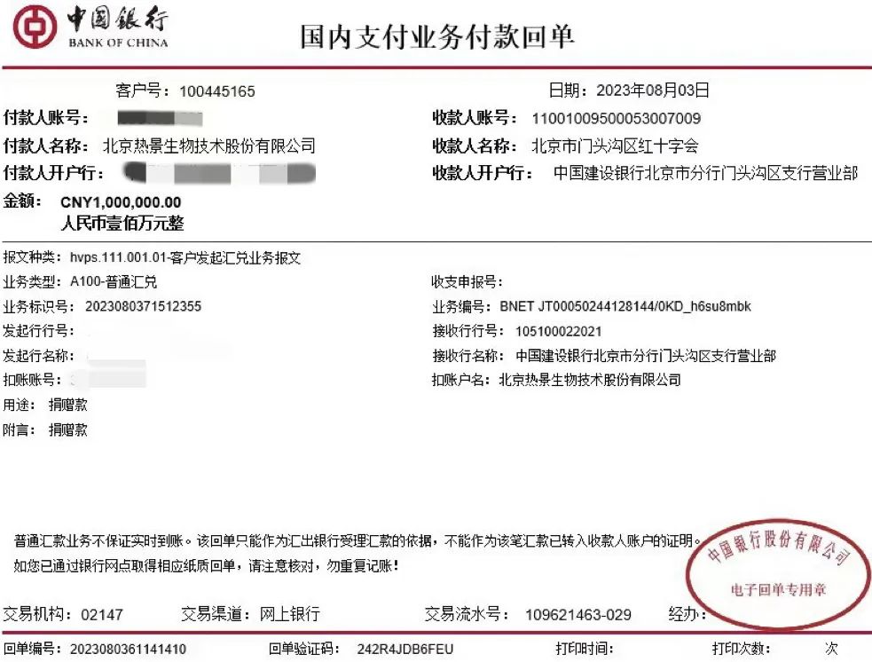 熱景生物一直密切關(guān)注著汛情救援進(jìn)展,主動(dòng)聯(lián)系相關(guān)部門(mén)提供支援幫助,并向北京市門(mén)頭溝區(qū)紅十字會(huì)捐贈(zèng)100萬(wàn)元防汛抗洪資金,助力當(dāng)?shù)卣蜕鐣?huì)力量抗擊災(zāi)情。