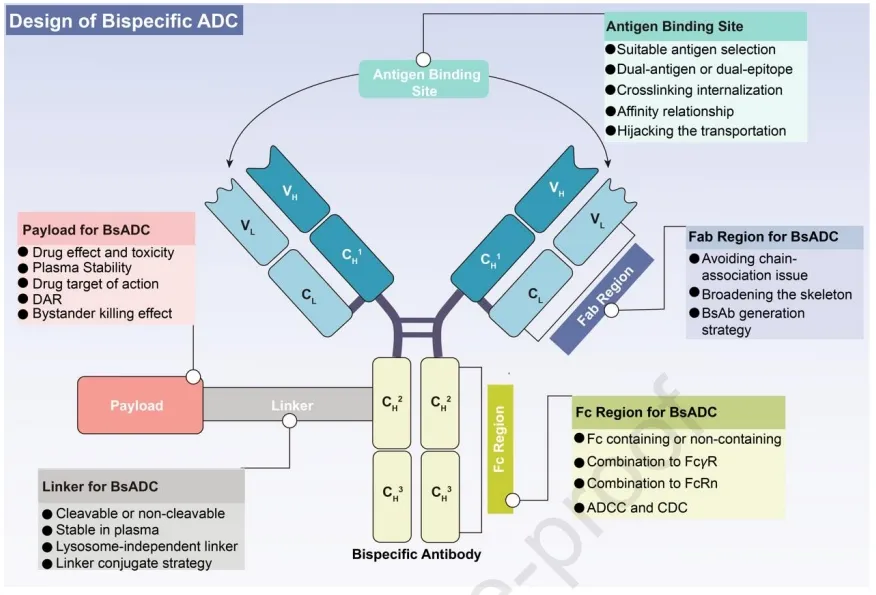 BsADC代表了一種融合ADC和BsAbs優(yōu)勢(shì)的新型治療類別。然而,其面臨的挑戰(zhàn)依然存在,主要?dú)w因于實(shí)體瘤的復(fù)雜性,包括異質(zhì)性、組織學(xué)障礙和滲透性差等。必須完善BsADC的設(shè)計(jì)策略以克服這些挑戰(zhàn)。