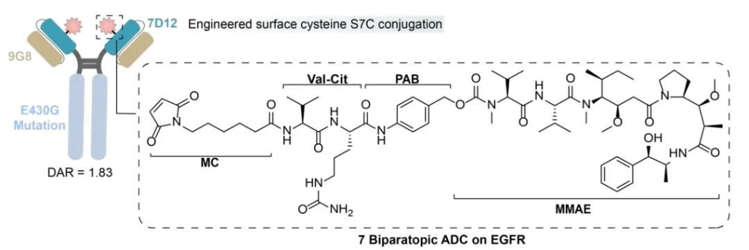 MC-VC-pab-MMAF這一有效載荷復(fù)合物通過(guò)半胱氨酸殘基的位點(diǎn)特異性偶聯(lián)技術(shù)實(shí)現(xiàn)。在BsADCs的雙重特異性結(jié)合作用下,內(nèi)化效果可能會(huì)因同時(shí)靶向的相鄰抗原而顯著變化,這與它們的表達(dá)比例密切相關(guān)。這種特性擴(kuò)展了抗原選擇的廣度,使得原本內(nèi)化能力較弱的BsADCs設(shè)計(jì)成為可能。這種創(chuàng)新的方法為增強(qiáng)某些抗原的內(nèi)化能力提供了一種精細(xì)的策略,增強(qiáng)了BsADCs對(duì)更廣泛腫瘤抗原的多功能性和有效性。