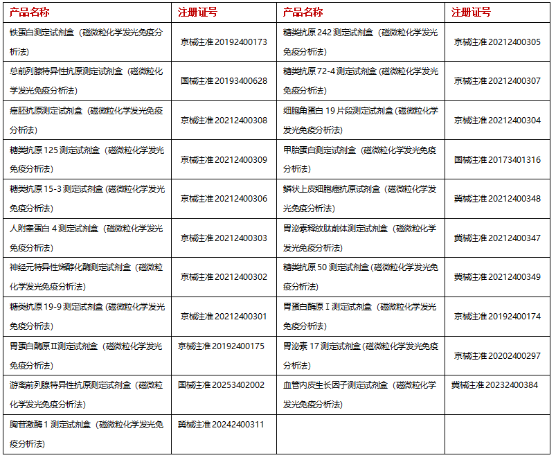 熱景生物磁微?;瘜W(xué)發(fā)光平臺已全面布局腫瘤標志物檢測,菜單含有超20項腫瘤標志物,涵蓋肝癌、肺癌、乳腺、卵巢、前列腺、消化系統(tǒng)等常見惡性腫瘤,為我國腫瘤防治貢獻自身力量。