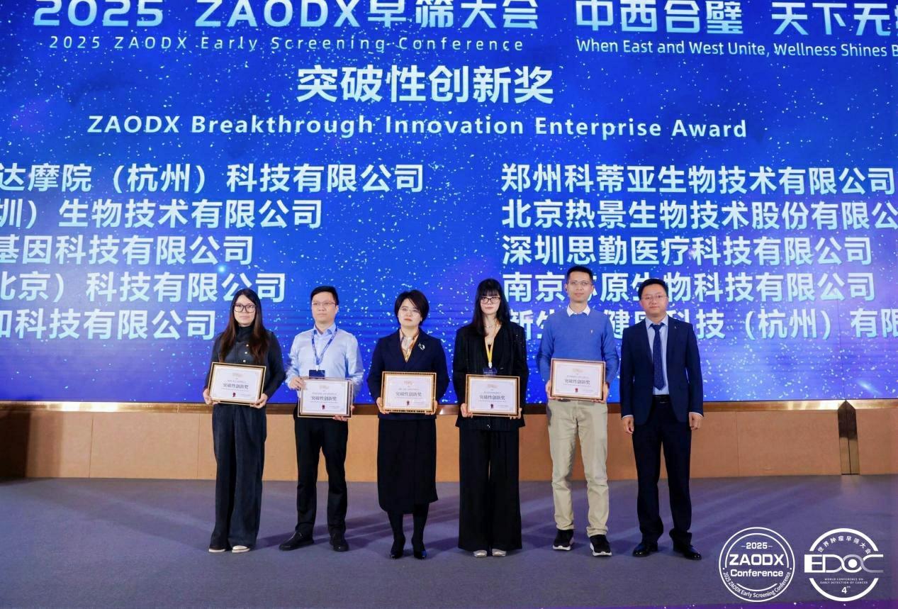 12月20日-21日,以“中西合璧,天下無疾”為主題的“2025 ZAODX早篩大會”在廣州舉辦。會議期間,主辦方公布了第四屆“金篩獎”榜單,并舉行線下頒獎儀式。熱景生物憑借“C-GALAD肝癌風險預警模型”的創(chuàng)新性以及“肝癌早篩健康中國行”公益項目的巨大社會和經(jīng)濟價值分別榮獲“突破性創(chuàng)新獎”與“企業(yè)/機構(gòu)社會責任獎”。一次斬獲兩項行業(yè)榮譽,體現(xiàn)了業(yè)界對公司在肝癌早篩領(lǐng)域技術(shù)創(chuàng)新與社會貢獻的充分肯定。
