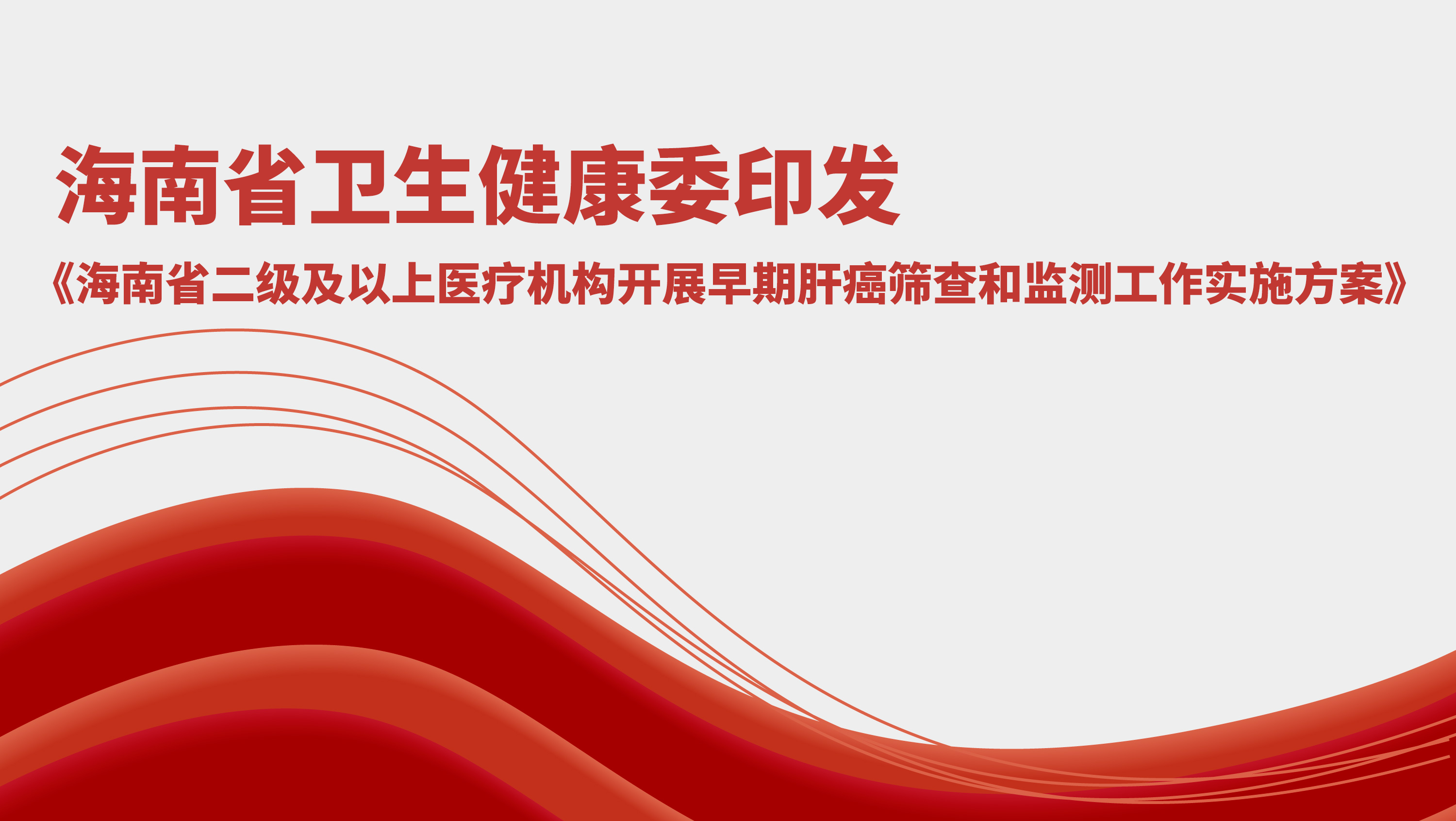 近日,海南省衛(wèi)生健康委印發(fā)《海南省二級(jí)及以上醫(yī)療機(jī)構(gòu)開展早期肝癌篩查和監(jiān)測工作實(shí)施方案》(以下簡稱《方案》),計(jì)劃在全省二級(jí)及以上醫(yī)療機(jī)構(gòu)建立早期肝癌篩查和監(jiān)測工作機(jī)制,進(jìn)一步做好海南省“2+3”健康...